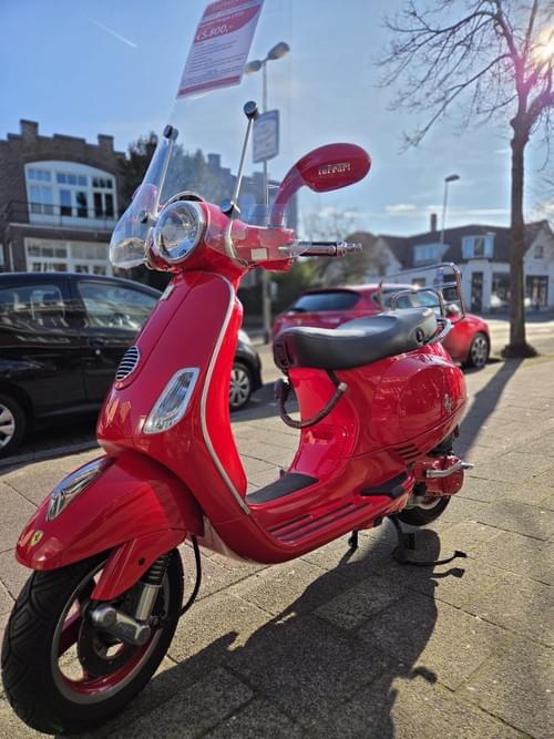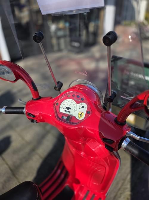 Aangeboden: een Ferrari Vespa LX50 uit 2010 in het iconische Ferrari rood – Corsa Rosso, met slechts 45 originele kilometers. Dit betreft een gelimiteerde uitvoering die naar alle waarschijnlijkheid in 2010 als dealer-initiatief is geleverd bij aankoop van een Ferrari. Geen doorsnee scooter, maar een statement piece voor de liefhebber.