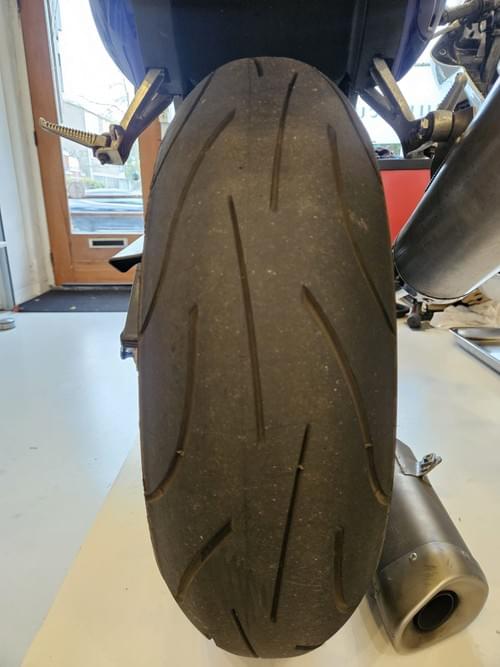 - Michelin Pilot Power GP sportbanden: 180/55/17 achter & 120/70/17 voor, beide met uitstekend profiel, zeer plakkerige band!